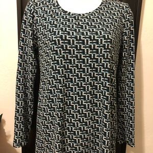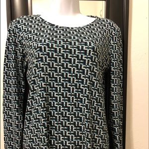 Long sleeves tee. With a geometric design. Round neck.Blue, black and white.