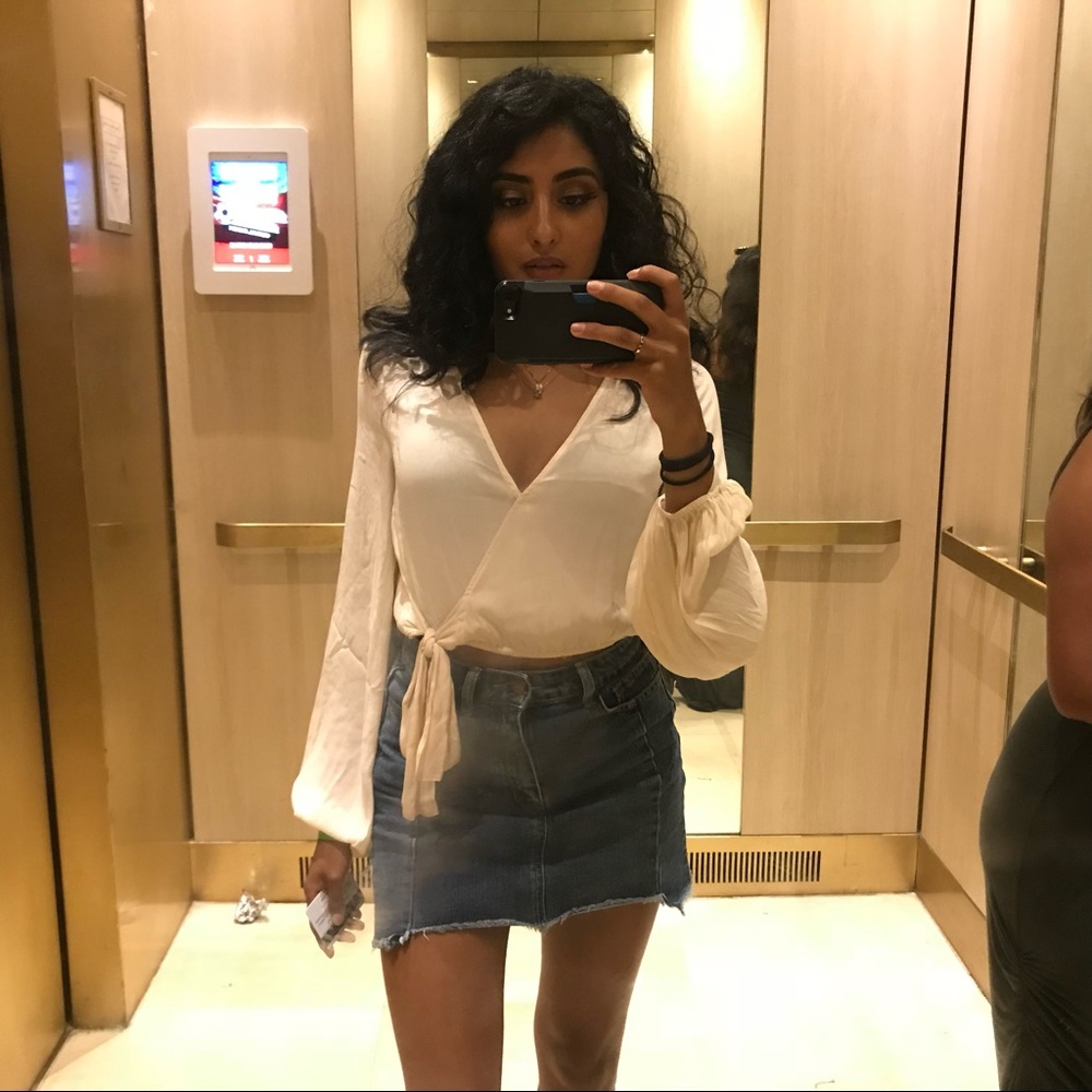 Sheer cream colored top with adjustable knot on the side. Has a small button in the middle to make it more of a v neck. Worn once.