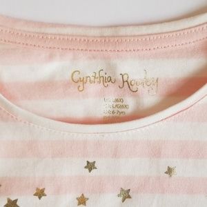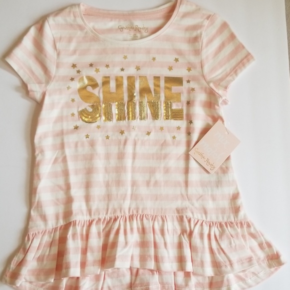 It's a beautiful young girl top. Its pink and white stripes with ruffles at the bottom.