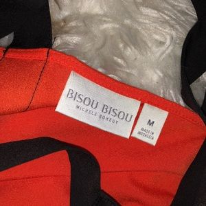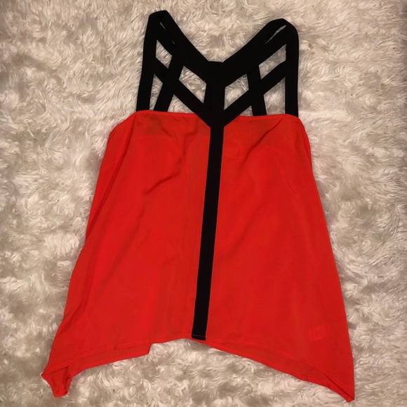 Red with black straps. Cute with jeans for going out or dress it up with a blazer for work!