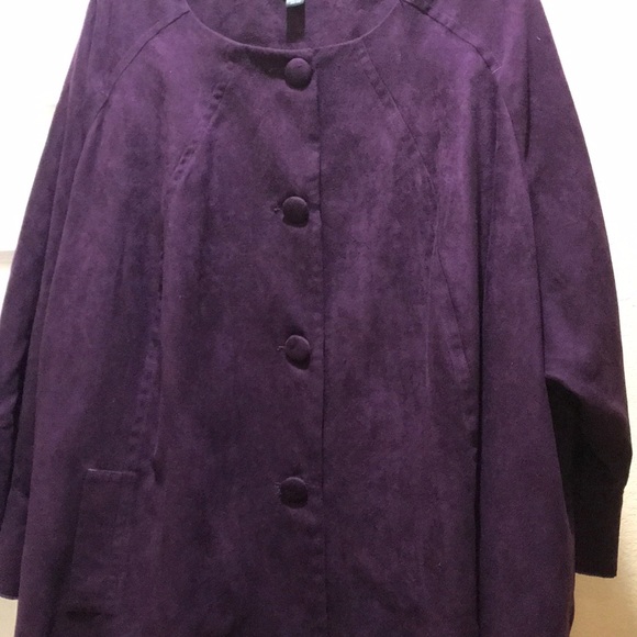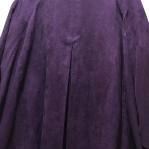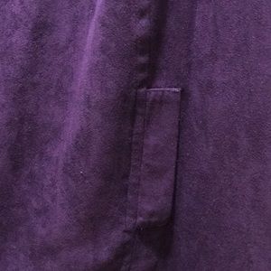 Purple buttoned down blouse. Looks and feels like suede. Covered buttons. Size 30/32. Cape style fit