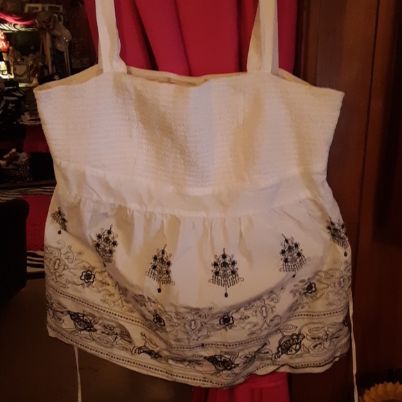 White cotton straps and tie black embroidered design bust stretches. 18 pit