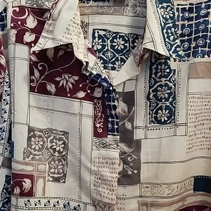 Beige printed top, hidden buttons, long sleeve 100% polyester