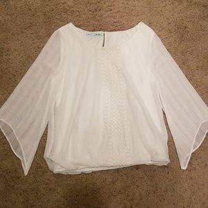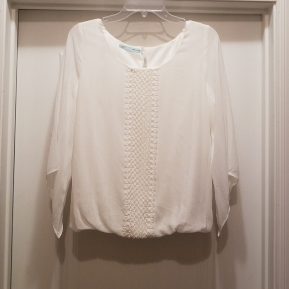 Cream top with detail going down the front middle, elastic waist