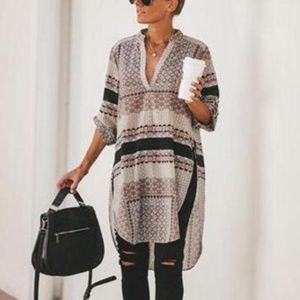 Multi Stripes colors, loose fit. Still new, never worn. Length 43 inch long with long Sleeves