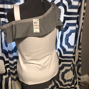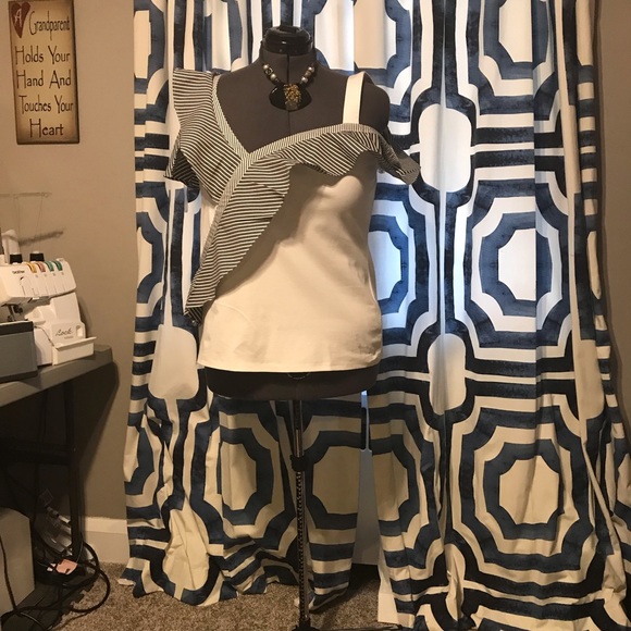 Beautiful Summer Top. Black & White Ruffed Front and Back. Too big for me. Non- Negotiable