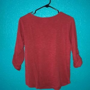 Rust color top. Can unfold/fold the sleeves. Cute knitting on the center. Worn a few times. No rips or stains. ☺️