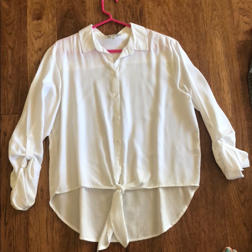 White top tied at the bottom! Slightly see through! Size: Large Never worn!!
