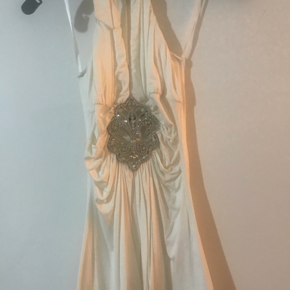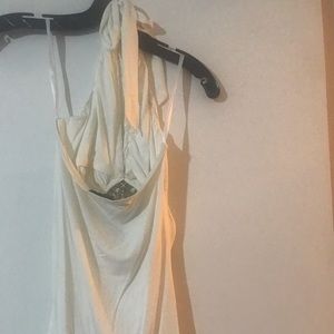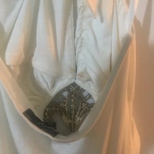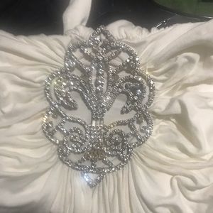 Sexy top, deep v neckline with a rhinestone brooch and a open back ( has a stain by the tag needs to be dry cleaned)
