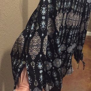 Top with sleeves that open. Button closure in middle of sleeve. Loose fit.