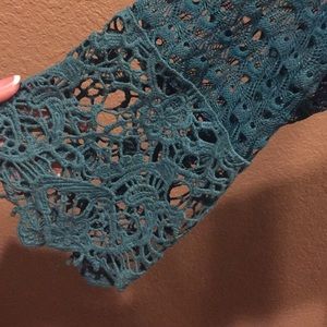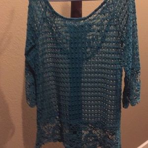 Long top, 3/4 sleeves. Loose fit. Teal blue in color.