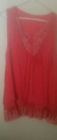 Summer type, short sleeve blouse with crotched floral v-shaped top with attached front tie vest look with lace trim on bottom of inner blouse.