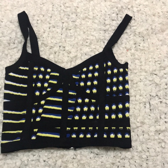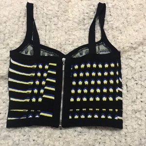 Brand new with tag V Black, blue and yellow crop top with a silver zipper on the back