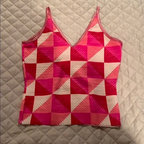 Material stretchy but not too clingy. Metallic pink leather trim. Comfy