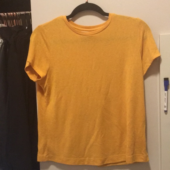 Cool mustard top! It has a cut out in the back that keeps you cool in the summer