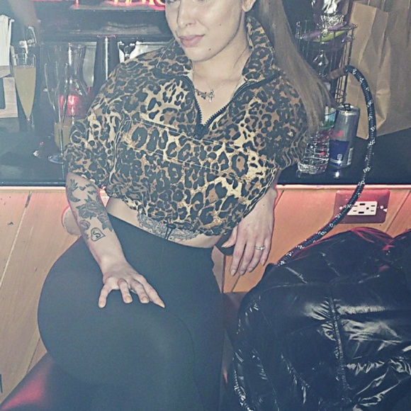 Cheetah print crop top sweatshirt with zipper medium