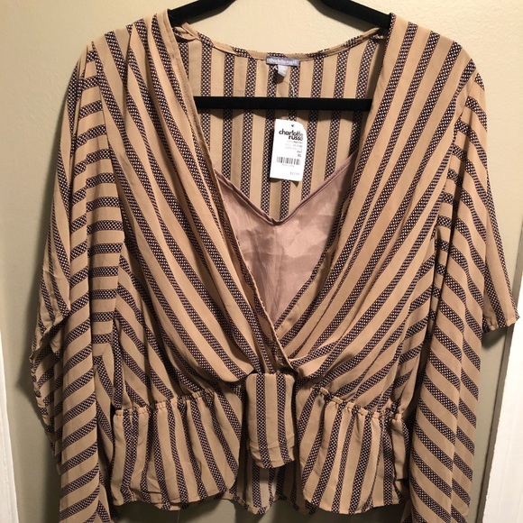 Cream/ tan colored blouse XL fits normal the under shirt is attached