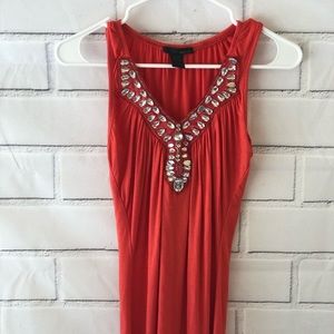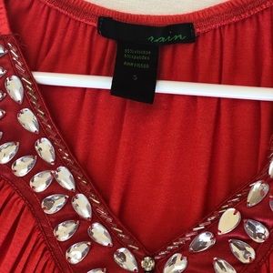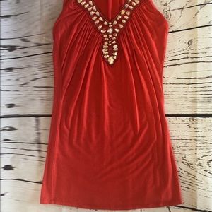 Beautiful orange top with sparkling gems around neck