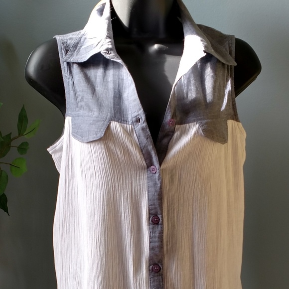 Gray and white button town sleeveless tunic. Brand new, without tag, never worn. Purchase wrong size and never returned it. Store closed
