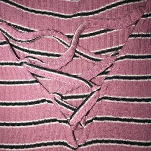 Pink, black & white striped blouse. Material is stretchy. SIZE S.