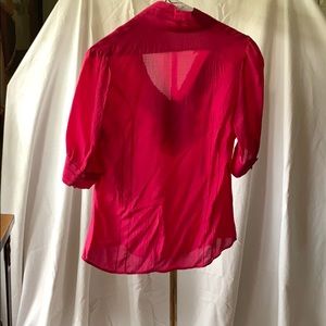 Etcetera pink silk blouse with ruffles at neck and buttons at neck