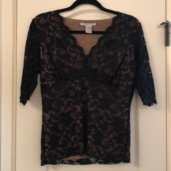 Short sleeve lined- lace v-neck dressy blouse. Worn only a couple of times. 97% nylon, 3% spandex.
