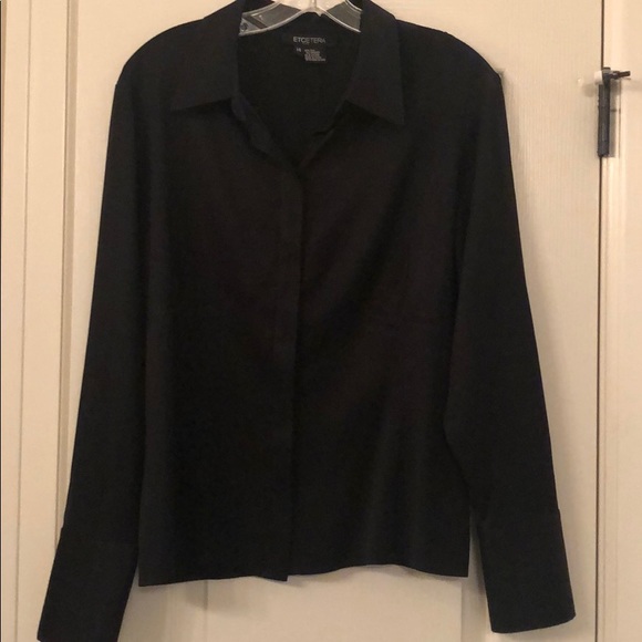 This designer black blouse fits like a glove! With darts and seams strategically placed to accentuate your curves!