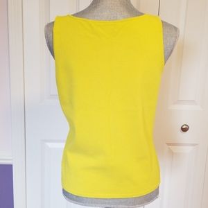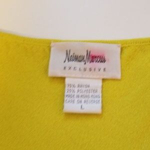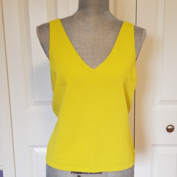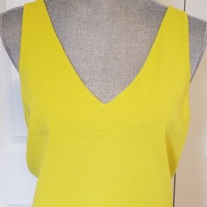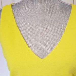 V-neck lemon color top made of thin viscose. The color is very pretty, it is a mix of lime and lemon. 22.5 inches long, 17 inches armpit to armpit.