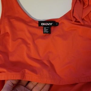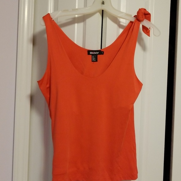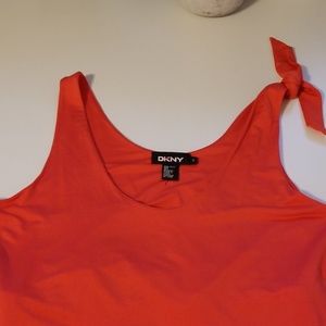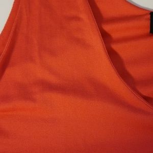 Round neck, sleeveless, very soft fabric, beautiful coral color. You can tie one shoulder higher or lower. This Small size is a very generous. 23 inches long, 16 inches armpit to armpit.