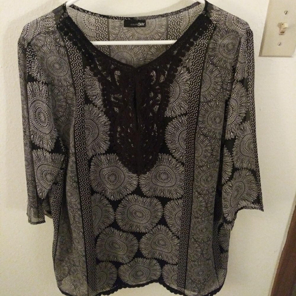 Beautiful and elegant black and white sheer top with camasol. Gently worn only a few times. A must have for summer parties!