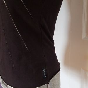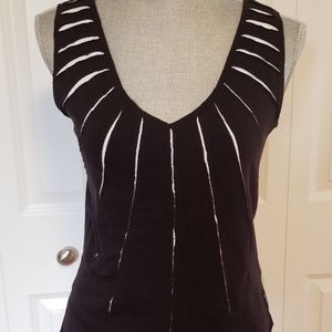 Extremely soft fabric, v-neck, decorative cutouts in the fabric. Size 10.