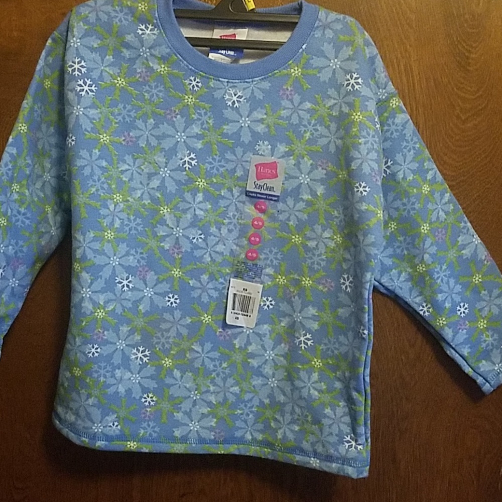 Girls long-sleeve sweatshirt blue with light blue flowers size 4/5 Hanes brand