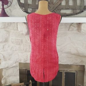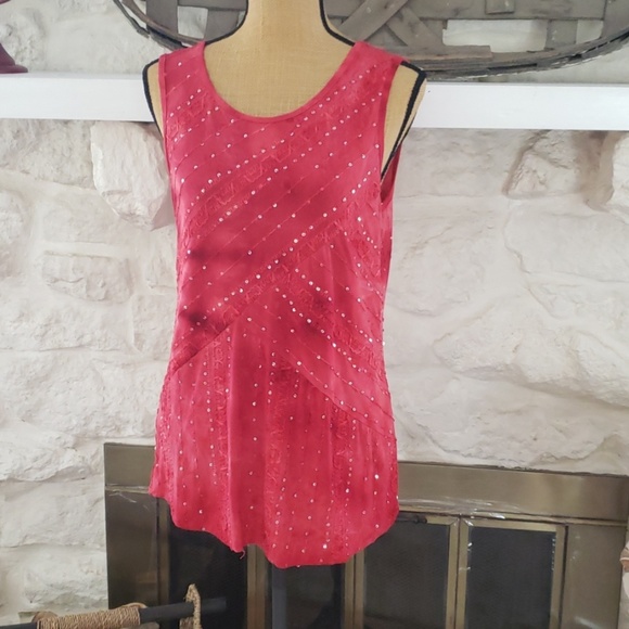 Sequenced red sleeveless top. High low with a split in back. Very cute!
