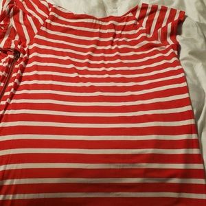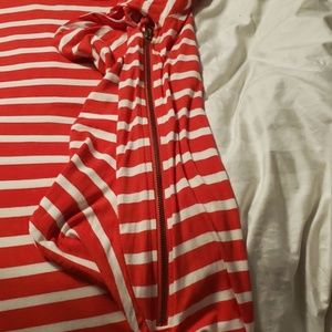 Cute spring/summer top red/white stripes with zipper and frills on one side. Short sleeve top