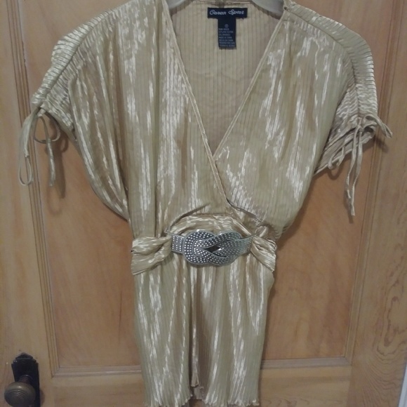 Gold pleated top with silver belt orniment attach that ties up in the back ..still new but no tags