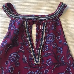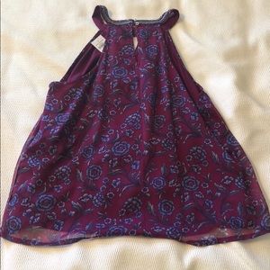 This is a very comfortable, silky top! Has beads on the collar. It has never been worn! This top is perfect for springtime!