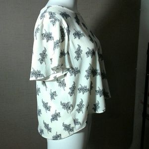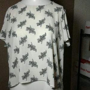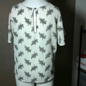 Light yellow or cream with black design 98%polyester, 2% soandex, short sleeve