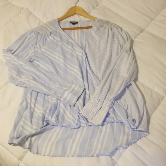 Like new striped top. Its light weight material. I only wore it a couple of times. Its a light sky blue color, perfect to wear with some skinny jeans and cute boots! Make me an offer 👍