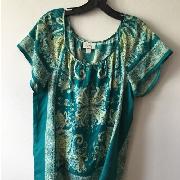Teal multi color blouse, short sleeve ,worn before a couple of times. Dress up or down .
