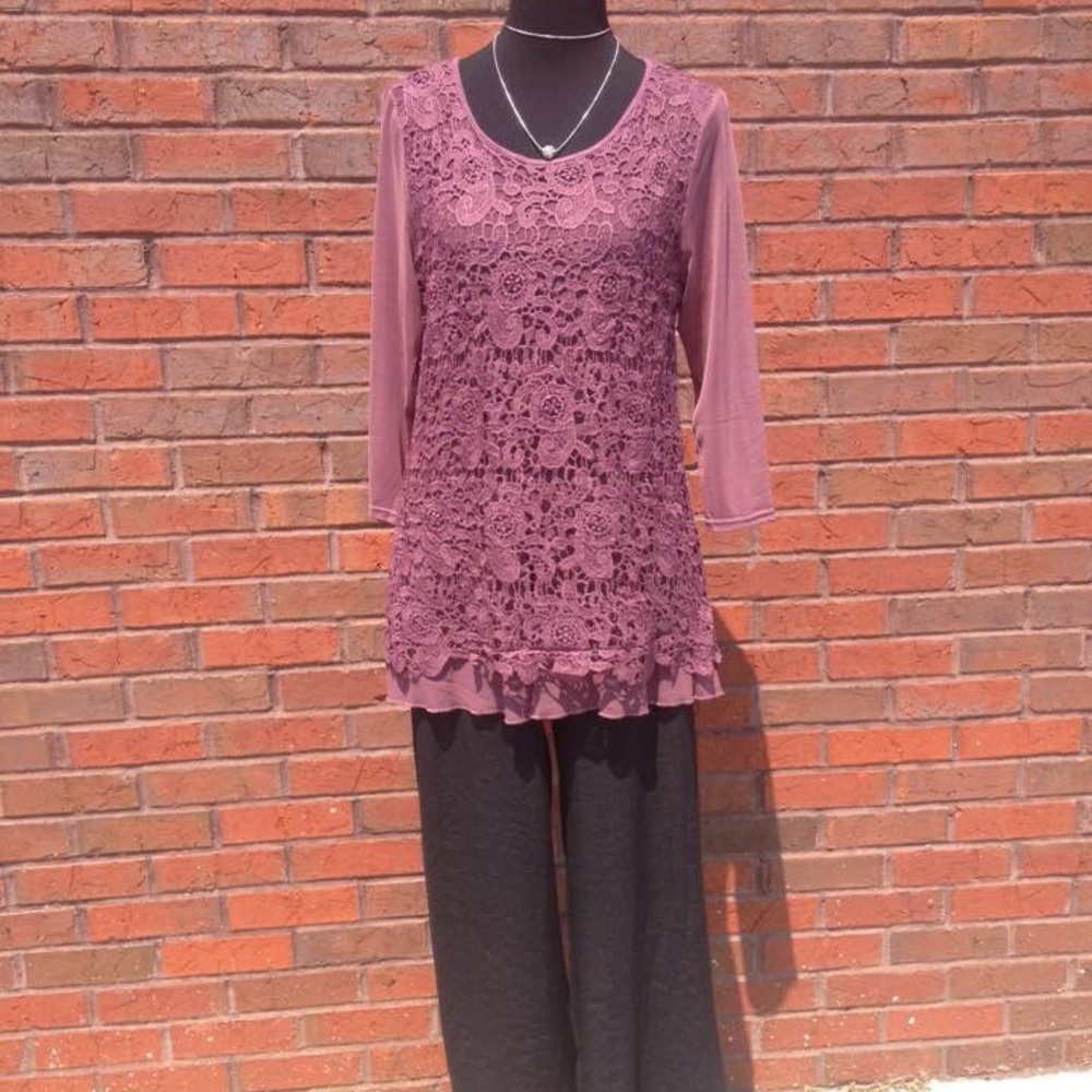 Mauve Top with Embroidery Front and 3/4 Length Sheer Sleeves by Katie todd