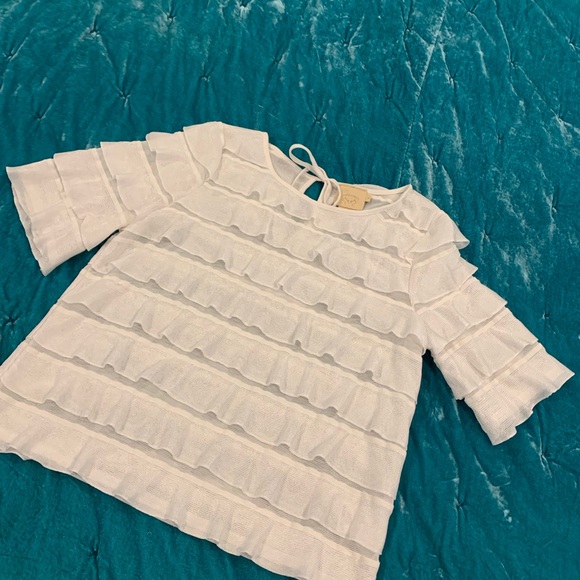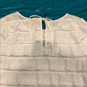 White ruffled stretchy top 95% polyester & 5% spandex Tie back