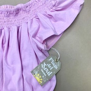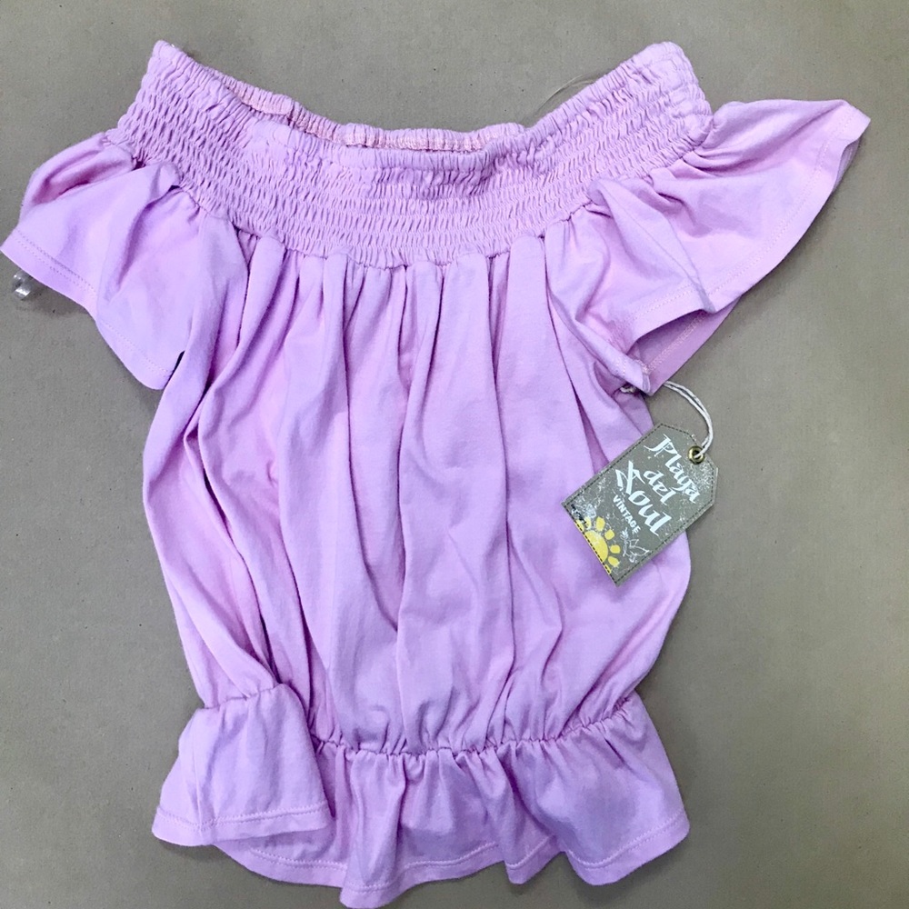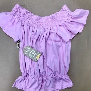 Elastic smocking off the shoulder top