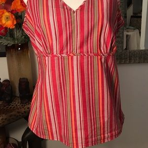 Cotton sleeveless top with stripes. Pair with white capris or shorts.