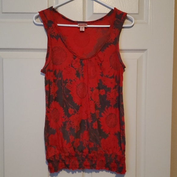 Grey and red flowers with scoop neck and banded bottom