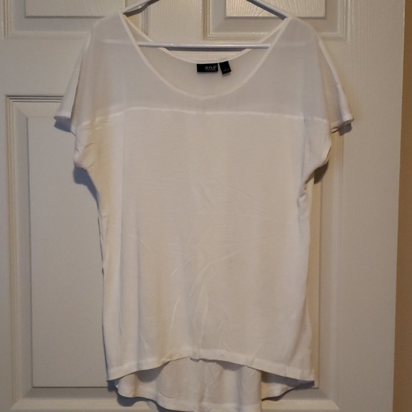 White high low top with sheer white shoulders and neck line