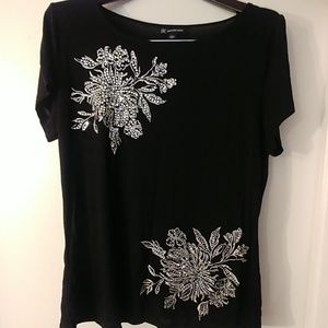 Beautiful casual top.Size Large. Black with silver embellishments. Never worn.perfect with jeans