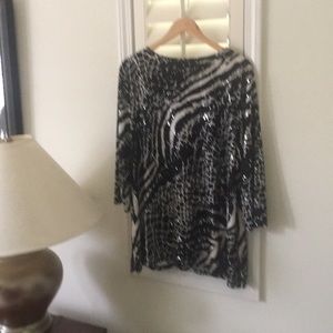 Beautiful out in the town style top. Great for special occasions or holiday parties. Flows very nice. Beading details comes to a V in the front.