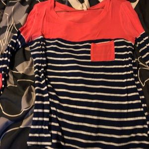 3/4 sleeve t-shirt with front pocket, runs small