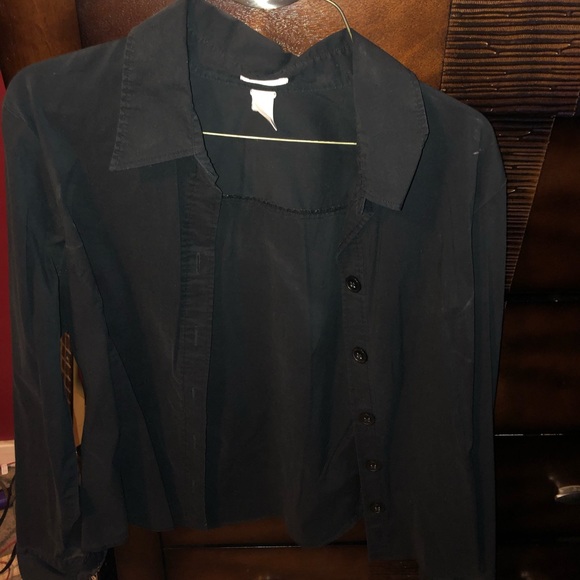Black long sleeve, big buttons, buttons all the way down, button sleeve