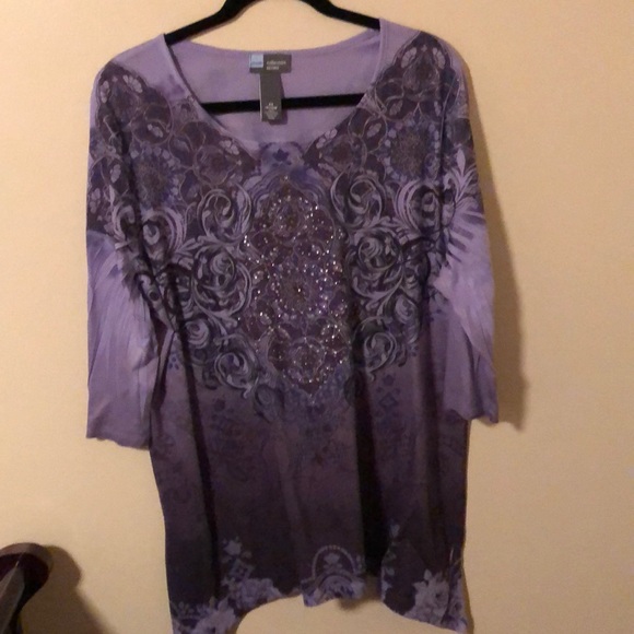 Purple and brown top with red and clear sequins 100% polyester